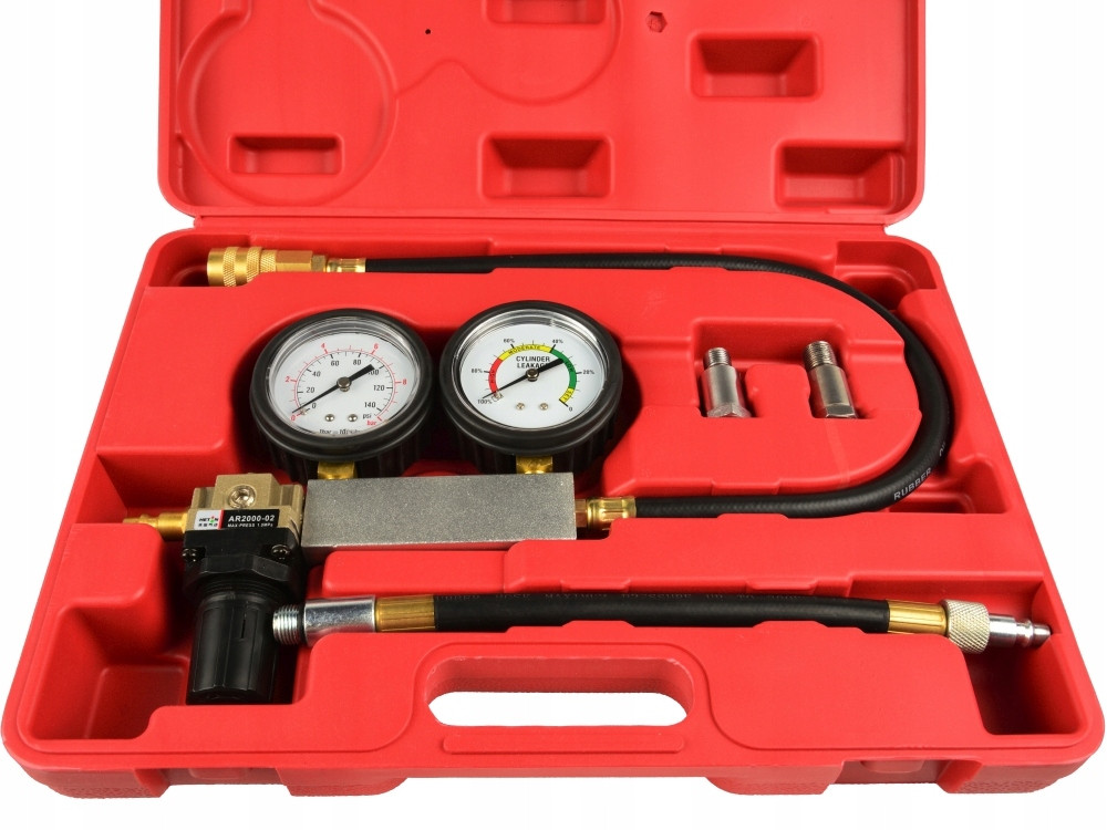 Тестер герметичності циліндрів бензинових двигунів дозволяє швидко і легко діагностувати витоку в камері згоряння. Дозволяє перевірити ступінь зносу двигуна шляхом подачі стисненого повітря в циліндр і визначення відсотка падіння тиску, викликаного витоками в циліндрі. Виявляє, серед іншого ушкодження поршневого кільця, пошкодження впускного або випускного клапана, пошкодження прокладки ГБЦ.